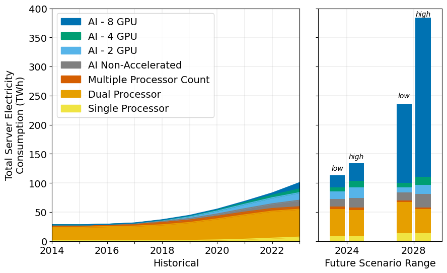 However, the rise of large AI training clusters is expected to increase electricity demand significantly during the 2020s.
